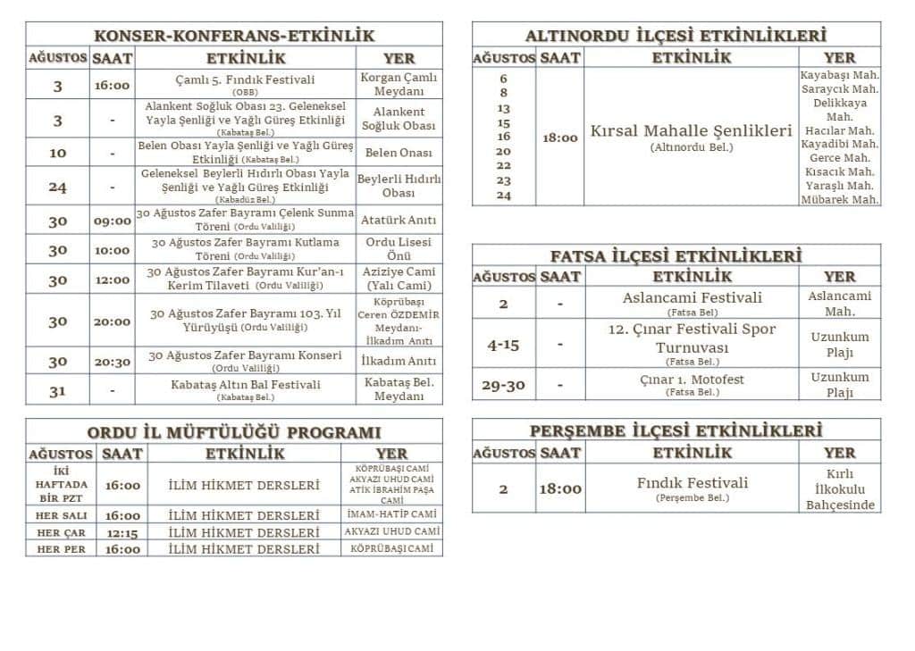 ORDU KÜLTÜREL ETKİNLİK TAKVİMİ